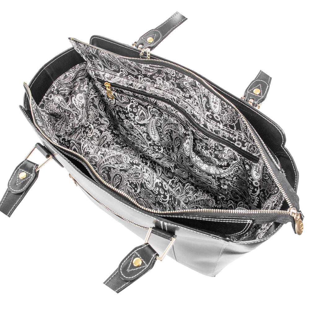 Alicia is a subtle yet powerful statement of class, sophistication, and functionality. With its premium full-grain leather and thoughtful design, Alicia offers an elegant solution for those who value both style and organization. Featuring multiple organizing pockets, a tablet pocket, and a side zipper for easy access, Alicia helps you stay organized while looking effortlessly chic. The elegant interior print enhances the design, and the bag’s stable structure ensures it remains as durable as it is beautiful.