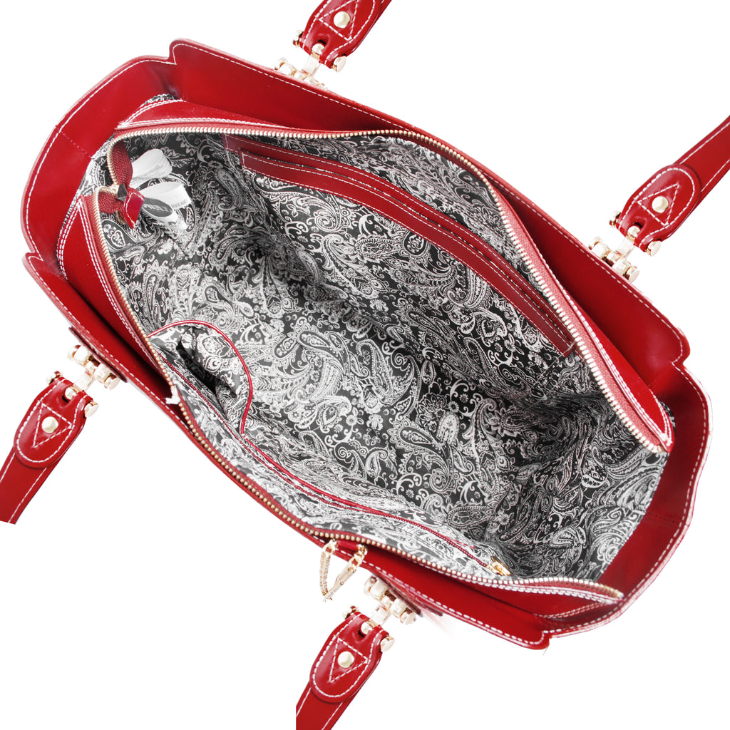 - Smart Organization – Tablet pocket, one interior zipper pocket, two interior slip pockets, and back zipper pocket