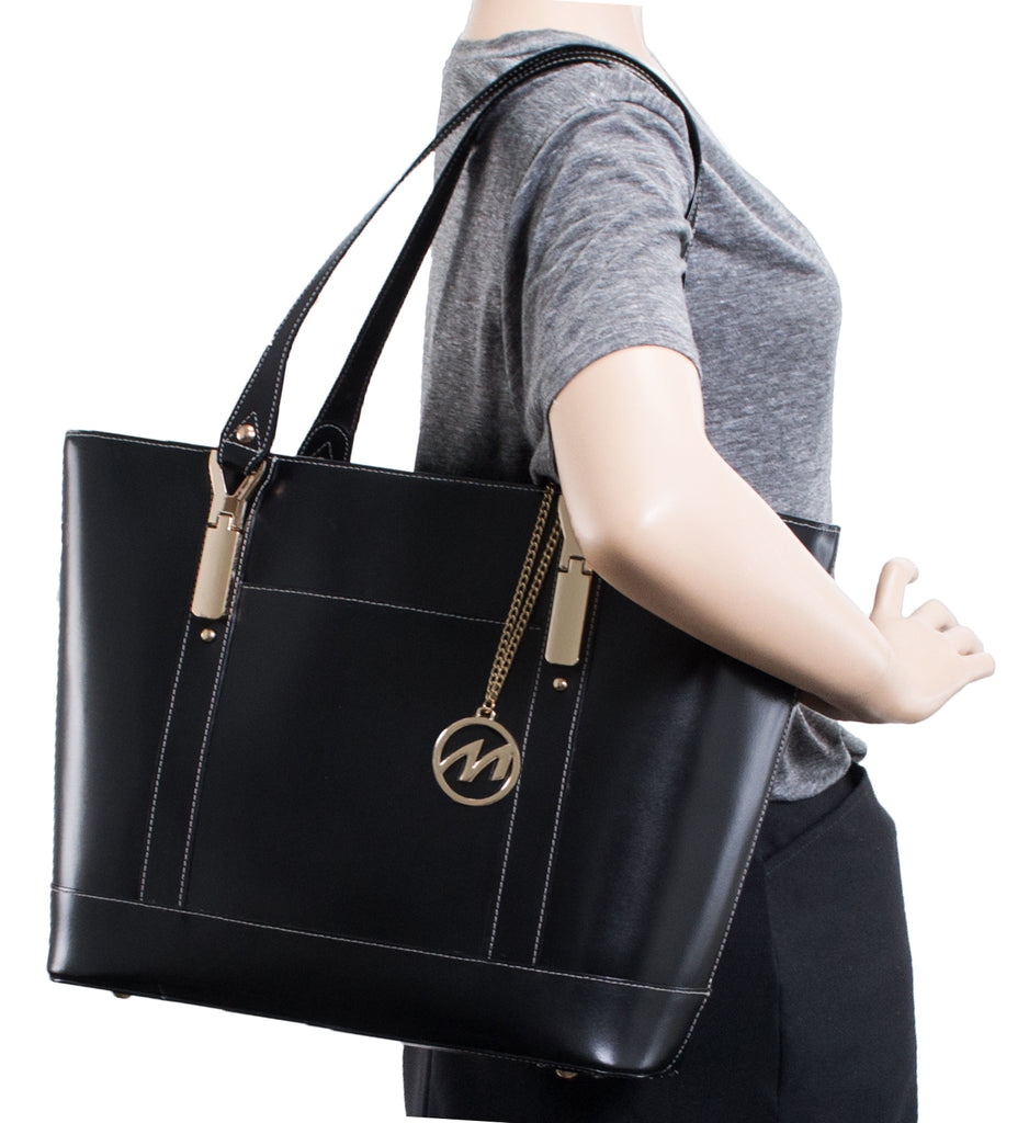 Arya is the perfect blend of style and professionalism, designed to keep you looking your best whether you are heading to work or running errands. Crafted from premium full-grain leather, Arya offers both functionality and elegance with its thoughtfully designed compartments, including a tablet pocket and interior slip pockets for easy organization. Featuring the McKlein emblem gold key chain, Arya is a tote that reflects your taste for luxury and practicality.