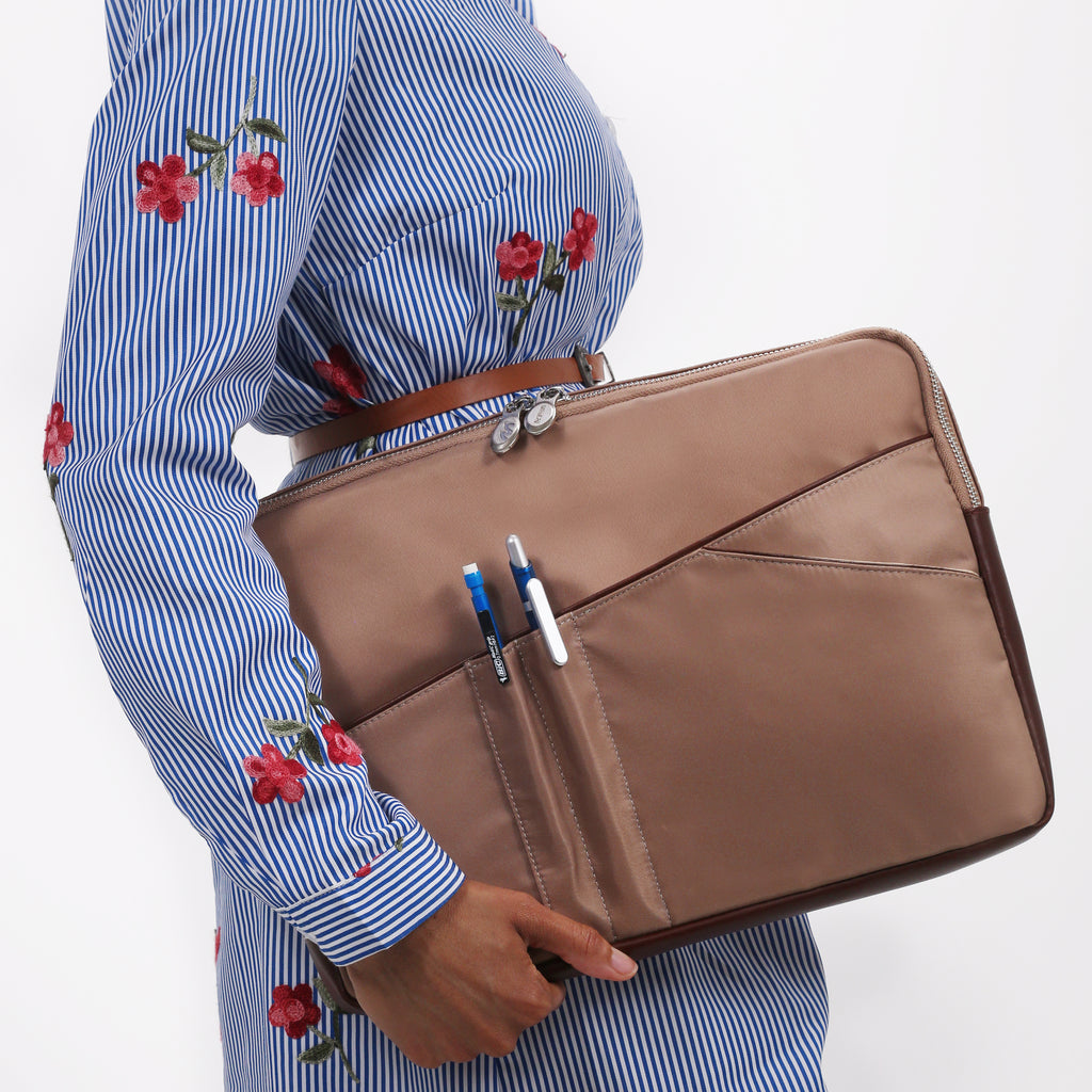 For the traveler who values simplicity and functionality, the Auburn Laptop Sleeve is the perfect companion. Lightweight, weather-resistant, and sleek, this sleeve is designed to protect your laptop with minimal fuss. Equipped with thoughtful pockets for your documents, pens, and accessories, the Auburn gives you everything you need—nothing more, nothing less. Stay organized and stylish on your journey, wherever it may take you.
