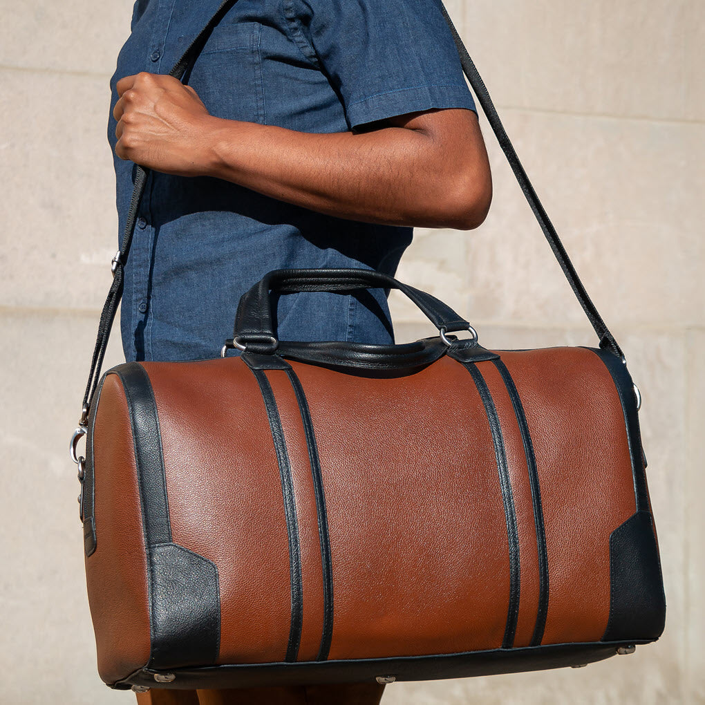 Command the Skies with Effortless Style. The Kinzie Carry-All Duffel is the perfect blend of luxury and functionality, designed for business trips, weekend getaways, or exotic escapes. With its sleek two-tone leather construction, smart organization, and versatile carrying options, this bag ensures you travel with confidence and sophistication.