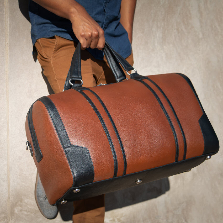 KINZIE | Leather Two-Tone Carry-All Tablet Duffel