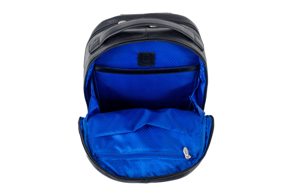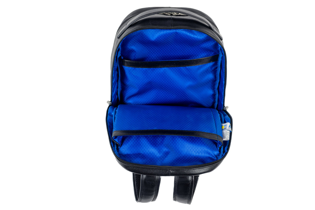 A Classic Look with a Modern Upgrade. The Parker Backpack takes the traditional bookbag and enhances it with a sleek leather design, advanced organization, and the latest functionality. Whether you're commuting, traveling, or heading to a meeting, this medium-sized backpack offers the perfect balance of style, comfort, and practicality.